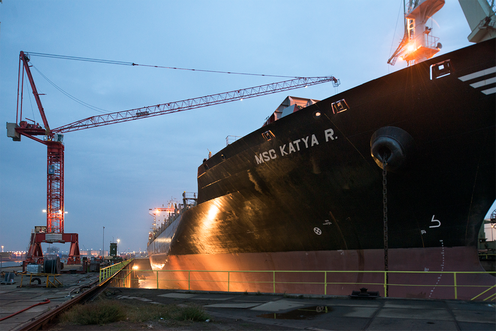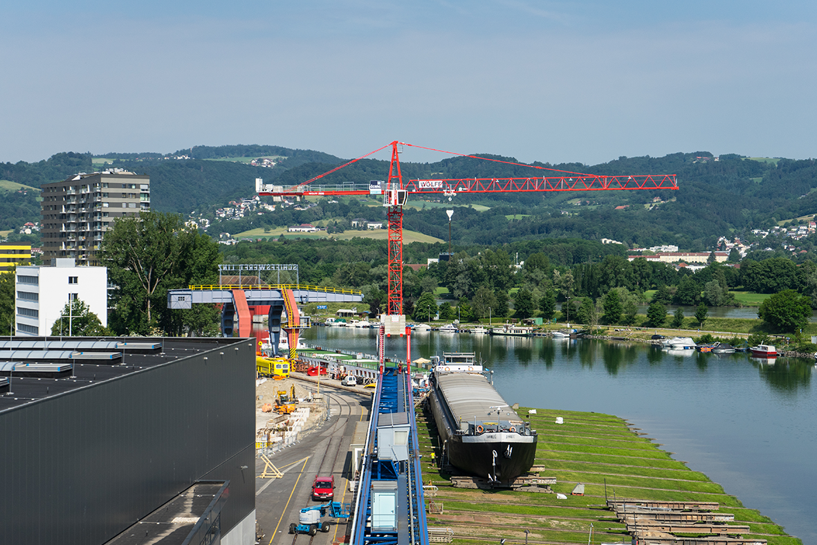 Für den Einsatz unserer Krane auf Werften setzt WOLFFKRAN auf modernste Hebetechniken: Eine bewegliche Kranbasis ermöglicht flexible Hebelösungen, die sich einer kontinuierlich veränderten Umgebung schell anpassen können.