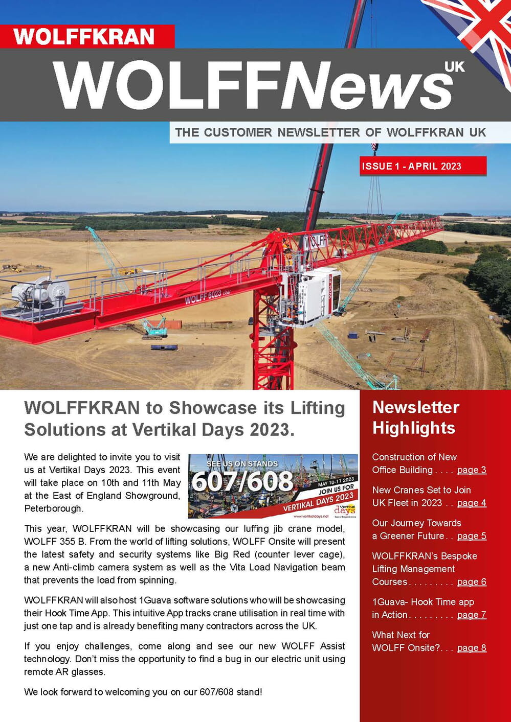 The last few years have been very challenging for many businesses and we are no different. That said, we have weathered the storm and have a lot to look forward to this year. I am pleased we will have more brand new WOLFF cranes joining our rental fleet, we will be upgrading our offices as well as starting a refurbishment program of some of our facilities at our Sheffield Head Office. This will ensure we are able to continue to provide the best lifting solutions to the UK market rental market in the future. We hope you find our newsletter informative and look forward to serving you throughout the year.
